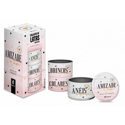 Presenteie sua melhor amiga com a Lata porta joias Amiga do coração. Vai ficar muito mais fácil e prático encontrar os acessórios na hora de arrasar com aquele super look. O Conjunto Porta Biju possui três compartimentos e você pode separar seus acessórios de uma maneira muito prática, acomodando tudo em seu devido lugar. As latinhas de metal se encaixam uma na outra e são super fáceis de abrir e fechar.